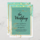 Mint Green Gold Alcohol Ink Abstract Wedding Invitation