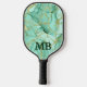 Mint Green Gold Alcohol Ink Marble Monogram Pickleball Paddle