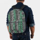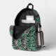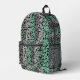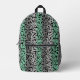 This customizable back-to-school backpack showcases an abstract design of digital pixelated vertical stripes in a refreshing mint green, sophisticated grey, and bold black. The eye-catching stripes in mint green, combined with a two-tone grey against a sleek black backdrop, create a stylish and modern aesthetic. This trendy striped pattern not only enhances the visual appeal of the backpack but also makes it a fashionable choice for students looking to make a statement.