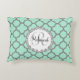 Mint Green Grey Quatrefoil Name Monogrammed Laurel Decorative Pillow