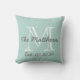 Mint Green Grey White Family Monogram Throw Pillow