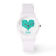 Graphic design of a mint green heart on a white background. You can personalize the watch with your own name.