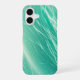 A serene and beautiful phone case featuring a dynamic design of light trails and delicate sparkles flowing across a refreshing mint green background.