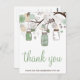 Whimsical thank you postcard featuring hanging mason jars, flowers and lovebirds. Matching items are available in my store.