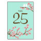 Mint Green & Pink Cherry Blossom Wedding Table Number