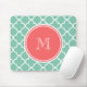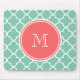 Mint Green Quatrefoil Pattern, Coral Monogram Mouse Pad