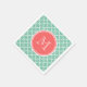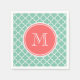 Mint Green Quatrefoil Pattern, Coral Monogram Napkin