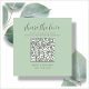 Mint green share the love QR Code cards. Place these small cards at your wedding reception tables so guests can scan to upload the photos they took at your wedding reception to your album or social media. To generate a new QR code on the design, add the URL of your online wedding album or social media handle in the area provided, using the "personalize" feature. A brand new QR code will then be added to to the design.