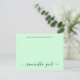 mint green Modern Wedding Stylish Script Elegant Minimalist Note Card in trendy chic nature greenery theme typo with couple family names in handwritten calligraphy and personalized text in standard classic sans serif font. Perfect for rspv and wedding invitations.