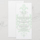 Simple with stylish elegance describes this sophisticated Subtle Damask Wedding Menu Card with a light mint green damask flourish background. This classy menu is perfect for a traditional wedding and can be easily customized with your wedding details. For more customization options, click on the Customize It button.