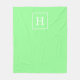 Mint Green White Framed Initial Monogram Fleece Blanket