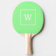 Mint Green White Framed Initial Monogram Ping Pong Paddle