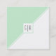 Mint green and white architect business cards with monogram. The front includes two diagonal stripes one mint green and one white that separate the card in two triangles. A white square is on the centre with your monogram.