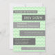 Personalized baby shower invitations in elegant and modern light pastel mint green, dark charcoal grey and white vintage retro chevron zigzags stripes pattern. Customizable with your text, contact us to request a colour change.