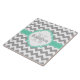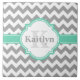A stylish modern grey chevron zigzag pattern with an elegant, bright mint green and white quatrefoil nameplate featuring a customizable name and custom monogram. This cool, geometric, fashionable, popular zig zag pattern and personalized name / monogrammed nameplate will make a thoughtful gift for a girly girl that loves chic classy patterns with a pop of colour.
