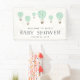 Welcome baby in style with this cute baby shower banner featuring a fleet of hot air balloons in gender neutral mint green watercolor. Personalize the custom text with the guest of honour's name and shower date. Shown with "welcome to [name's] baby shower" and the date.