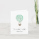 Modern whimsical design features a pastel mint green watercolor hot air balloon illustration with "thank you" and your choice of personalization. Add a pre-printed inside message if desired. Designed to coordinate with our Up in the Air baby shower collection.