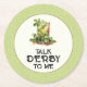 Elegant derby party paper coasters feature a beautiful mint julep illustration and TALK DERBY TO ME in chic lettering. MATCHING items in our collection.