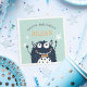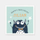 Add personalized charm to your little monster's birthday party with these adorable custom napkins. Design features a cute smiling cartoon monster sporting a dapper orange bow tie, on a mint green background. Personalize with a custom message and name; shown with "Happy Birthday." Designed to match our Little Monster kids birthday party supply collection.