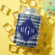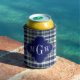 Mint Navy White Preppy Madras Quatrefoil Monogram Can Cooler