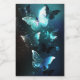 Mint night glowing butterflies on black abstract background.