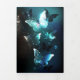 Mint night glowing butterflies on black abstract background.