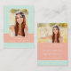 A modern senior rep marketing card. Featuring a chic mint green key pattern and peach / coral accents. Promote your senior photography business with these stylish senior rep program cards.