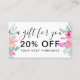 Floral watercolor gift discount card and a modern typography, with hand painted red burgundy roses, pastel pink and neon pink flowers with green and brown leaf and branches in a botanical bouquet arrangement. An elegant script calligraphy,