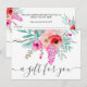 Hand painted red burgundy roses, pastel pink and neon pink flowers with green and brown leaf and branches in a botanical bouquet arrangement. An elegant script calligraphy, perfect gift certificate for all businesses.
