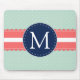 Mint Polka Dot Pattern Coral Navy Blue Monogram Mouse Pad