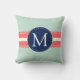 Mint Polka Dot Pattern Coral Navy Blue Monogram Throw Pillow
