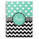 Mint Polka Dots Black Chevron Monogram Notebook