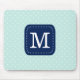 Stylish mousepad design in mint and navy blue colours, easily personalized monogram. Great mousepad for every office or home.
