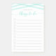 Stylish modern To Do List Post-it® Notes pad featuring the words "things to do" in a mint relax cursive script and mint overlapping lines with checkboxes and lines in grey against a white background.