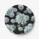 Mint Rosette Succulents Repeat Print on Black Mess Paper Plate