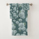 Mint Rosette Succulents Repeat Print on Pine Green Bath Towel Set