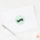 Round Christmas holiday stickers with a pale pastel mint background and a black scroll that reads Peace and Love with a mint flower and vine decoration. We have the matching Floral Spray Peace and Love holiday photo card, postage, and return address labels.