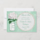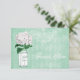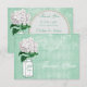 Elegant mint green and white thank you wedding flat cards, for newly weds to send to their wedding guests, with a cute green and white glass Ball mason jar and white hydrangea vintage flower illustration on a stylish antique shabby chic collage with beautiful white ornate decorations, a dragonfly, and faded writing on a stylish mint green harlequin pattern background. On the reverse of the invites is a glamourous printed white pearls and lace mat with text for you to personalize with your event details. Classy, trendy, fashionable modern girly invites. All of the text can be easily customized to meet your needs and you can change the font style, colour and size of font if you desire. I have matching wedding products in my store. If you need any assistance customizing your product please contact me through my store and I will be happy to help. Pearl mat by ©Hazel Kinvig-Paul www.design-a-dream.co.