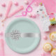 Mint Silver Ribbon Bow Birthday Paper Plate