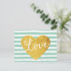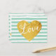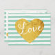 Mint Stripes Fake Gold Love Heart Cute Girly Postcard