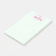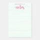 NewParkLane - Personalized post-it notes with a mint green and white striped pattern and 'Notes', in an elegant brush script typography, in hot pink.