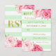Mint Stripes Pink Flowers Gold Wedding RSVP Card
