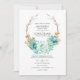 Ornate pastel mint floral wedding invitation with accents of gold customizable to your event specifics.