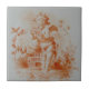 A charming Minton tile from the later 1800s, reproduced here in warm tangerine and jasper orange. (Other colours are listed separately.) It features a putti or cherub serenading birds with her pan pipes. Available in 4.5 and 6 inch wall tiles as well as other items.