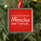 Miracle quote in red and white metal ornament