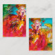 Colourful,whimsical,vibrant Venetian masquerade character.Sophisticated blonde woman is sitting with a red rose and a feathered mask in hand with sparkling gold fuchsia fabrics of a baroque masked ball costume with feathers and a dog. Watercolor painting with bright colours in yellow,blue,pink,green,gold sparkles and silver foil,inspired from characters of Comedy of Art ( Commedia dell' Arte ) ,Carnival of Venice and Venetian feather masks.This cool and artistic card is perfect for hair dresser,stylish hair stylist,theatrical make up artists,costumers,clothing designers,boutique owners,theatre actresses,models,cosmeticians,cosmetologists,perfume,personal shoppers,wardrobe consultants,fashion designers, fashionista,entertainment industry and other creative professions.