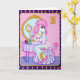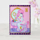 Une de mes peintures les plus populaires, Suzette le caniche rose devant son miroir se préparant à sortir une nuit sur la ville maintenant disponible comme carte de voeux