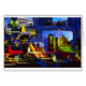a double exposure, stacks of mirrors and nighttime lights