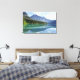 A breathtaking view of a turquoise lake reflecting forested mountains and a clear sky with soft clouds. This serene landscape captures nature’s perfect symmetry and peaceful energy, ideal for bringing calm and clarity into any space. Perfect for nature lovers, meditation rooms, and minimalist interiors seeking a visual escape into tranquility.