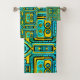 Mirrored Mosaic: Anamorphic green yellow & Blue Bath Towel Set